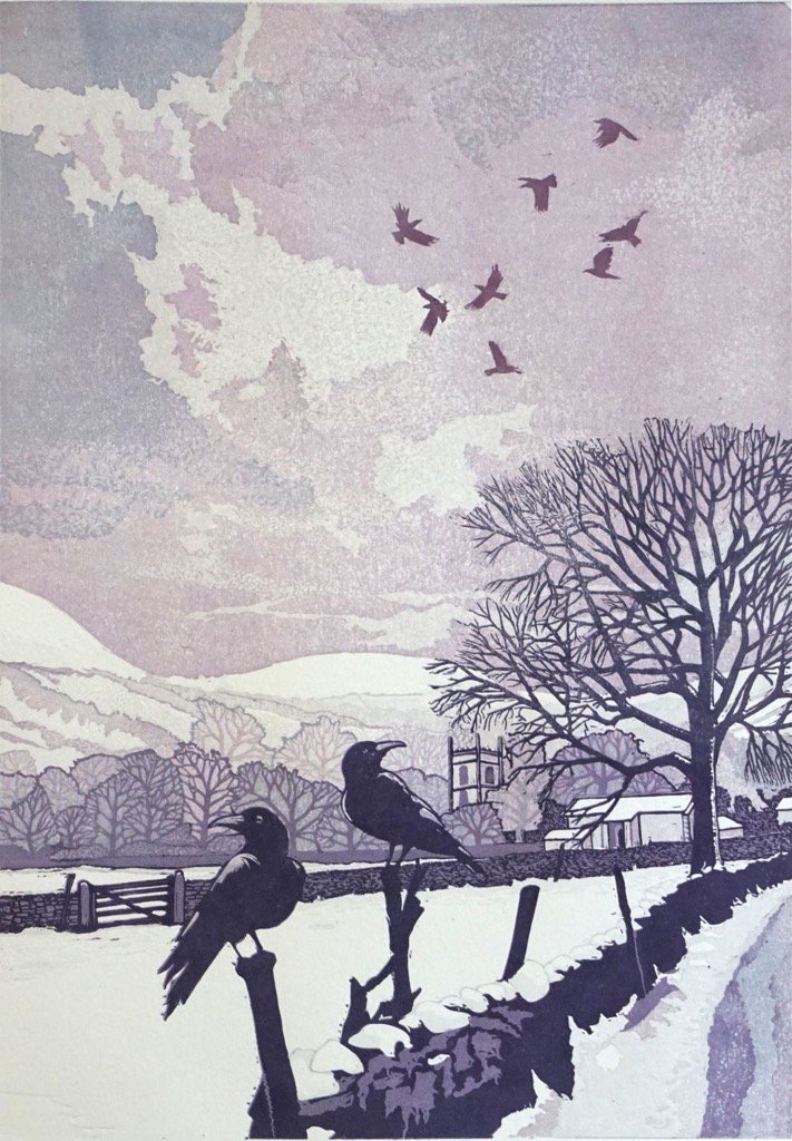 Linocut, Bleak Midwinter' 'Kettlewell' by Mike Smith.
